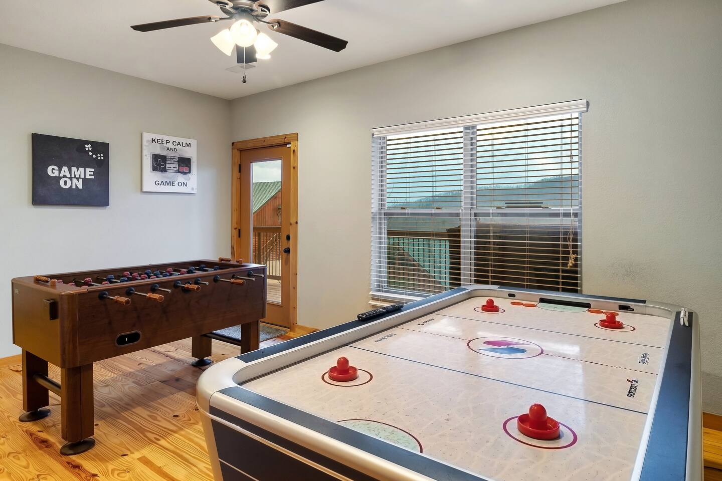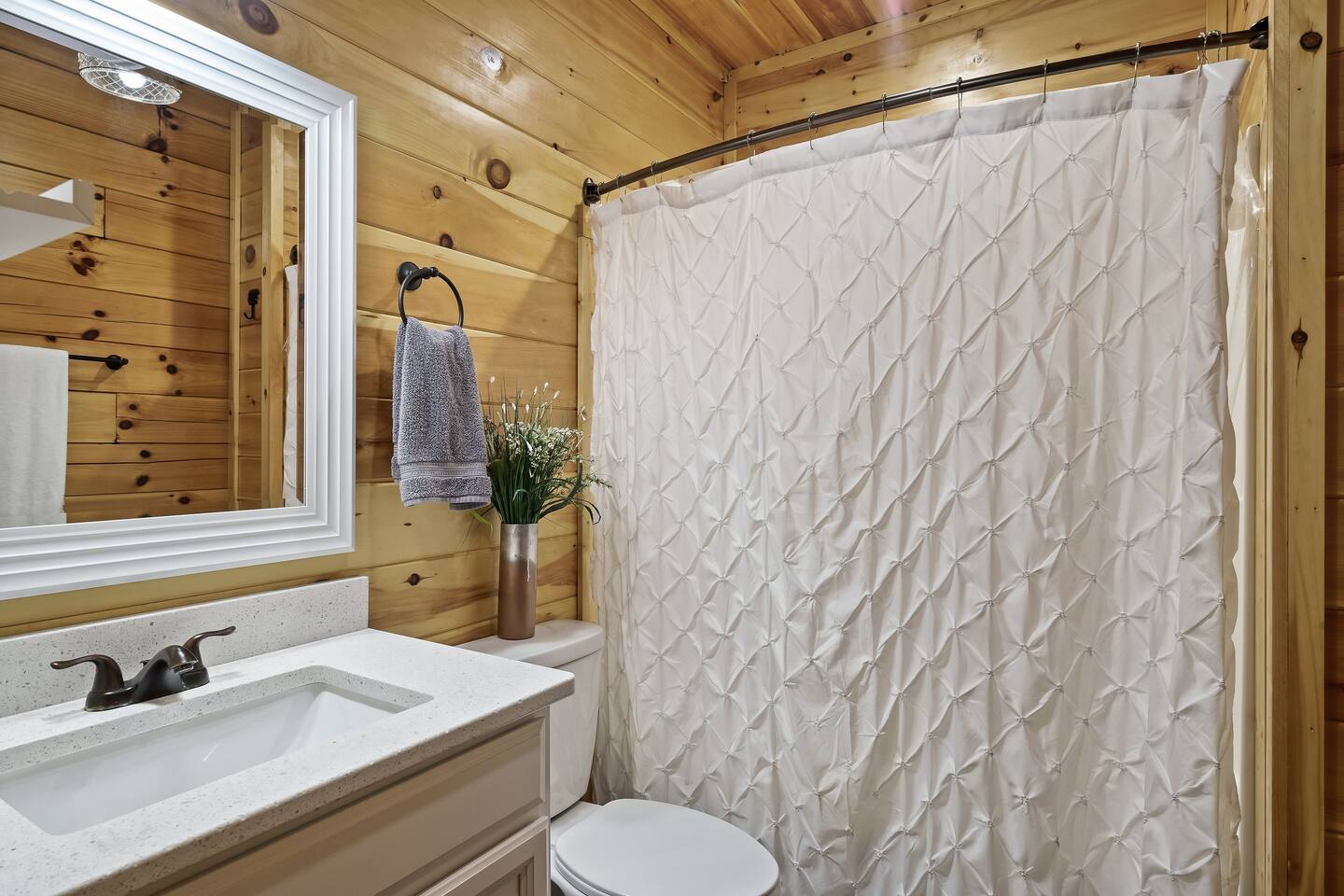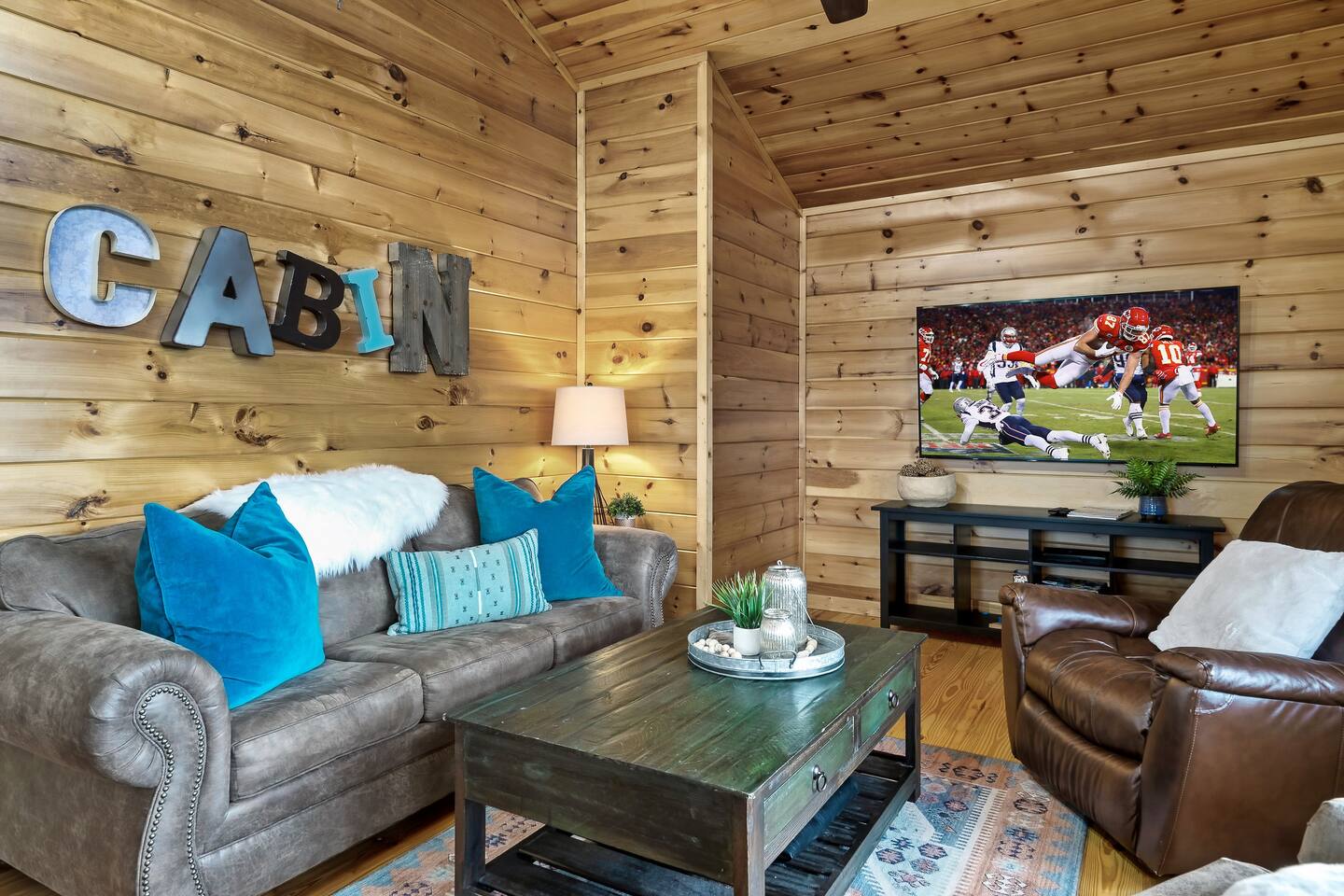 Managed by Sky & Cedar Properties; message for more information or check out our IG page: skyandcedarproperties. This rustic two-story log cabin is perched just minutes away from Pigeon Forge against the backdrop of a beautiful mountain range. With an open floor plan and plenty of windows for natural lighting, there’s a lovely view wherever you look. The cabin’s interior feels cozy yet spacious, furnished with modern amenities and decorated to feel warm and inviting. For entertaining, the entire cabin is furnished with ample seating and many activities to keep you busy during your stay, including pool, foosball, air hockey, and ping pong. An arcade machine, a theater room, and numerous televisions provide extra entertainment during your downtime. All three stories offer a covered deck where you can sit and enjoy the fresh mountain air and stunning scenery. Soak in the views from the comfort of the hot tub or a rustic rocking chair. When you’re ready to wind down for the night, the cabin’s three bedrooms are decorated to match the mountain views, furnished with luxurious amenities to make it a perfect place for resting after a day of exciting adventures in The Smokies. ★ LIVING ROOM ★ It immediately feels like home, with the lively fireplace, a comfy sofa, a coffee table for drinks and snacks, and a smart TV for watching sports events, favorite shows, or movies. - Comfortable Sofa with Pillows - Smart TV + cable - Indoor Fireplace - Coffee Table - Reading Lights ★ KITCHEN & DINING ★ It is fully equipped with state-of-the-art cooking appliances that make it suitable for preparing any meal, whether a simple breakfast, quick snack, or a three-course gourmet dinner. Spacious countertops provide plenty of room for you to work your culinary magic. - Microwave - Stove - Oven - Refrigerator/Freezer - Dishwasher - Sink - Hot & Cold Water - Glasses - Silverware - Pots & Pans - Coffee Pots- Keurig and Drip (BYO Pods and Ground Coffee) Serve your delicious homemade meals at the lovely dining table nestled right next to the kitchen. - Dining Table with Seating for 8-10 - Seating at Bar for 2 ★ SLEEPING ARRANGEMENTS – BEDROOMS ★ Rest and relax in the highly comfortable bedrooms located on each level of the cabin. ♛ Master Bedroom - King-Size Bed with Pillows, Linens and Sheets - Smart TV - Closet with Hangers and Shelves - Dresser with Spacious Drawers - Night Stands with Reading Light ♛ Upstairs Bedroom - King-Size Bed with Pillows, Linens and Sheets - Smart TV - Closet with Hangers and Shelves - Dresser with Spacious Drawers - Night Stands with Reading Light ♛ Lower Bedroom - Two Bunk-Beds with Pillows, Linens and Sheets - Smart TV - Closet with Hangers and Shelves - Dresser with Spacious Drawers ♛ Main Floor Living Room - Queen Sleeper Sofa (Linens and pillows provided in bedroom closet) ♛ Upstairs Living Room - Queen Sleeper Sofa (Linens and pillows provided in bedroom closet) ★ BATHROOMS ★ The charming cabin features three full relaxing bath with clean towels and essential toiletries (hand soap and shampoo) for maximum comfort and convenience. Toilet paper is provided. BYO toiletries. - Bath with a Shower - Shower - Vanity - Mirror - Toilet - Towels - Hair Dryer - Essential Toiletries ★ OUTDOOR AREAS ★ An elegant cabin like this one would not shine in its best light if it did not have a well-built private deck where you can relax and enjoy the majestic natural environment. - Three Spacious Decks with Mountain Views - Rocking Chairs - Hot Tub The cabin offers cozy accommodation and amenities in great forest settings. Let it be your primary choice when visiting The Great Smoky Mountains. We are looking forward to hosting you!